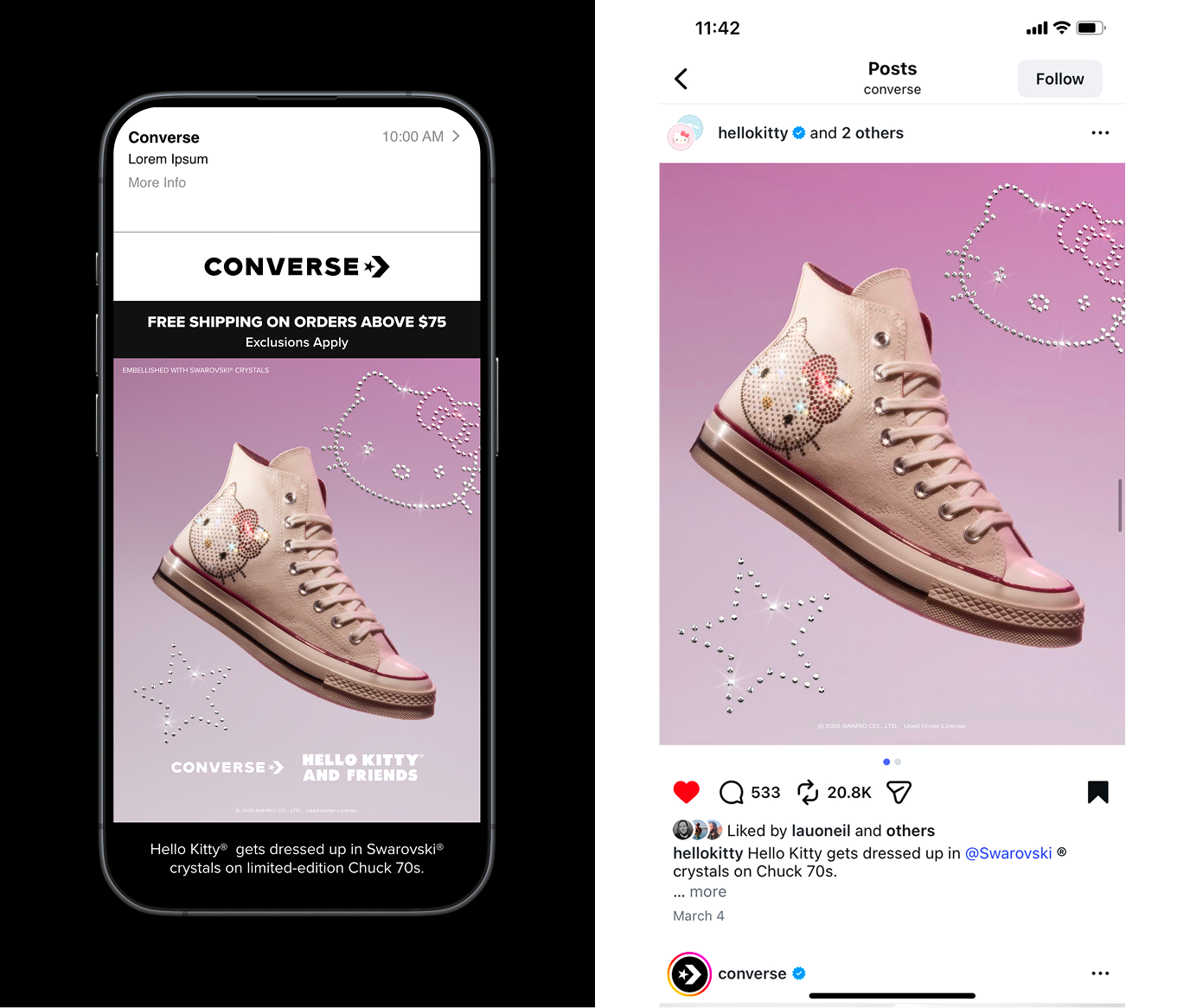 For a premium product offering created for our fashion-forward audience, a clean, sparkling creative direction was crafted to highlight the Swarovski crystals and classic Chuck canvas. The elements were designed to be flexible enough to extend into giftable items and experiential design elements.