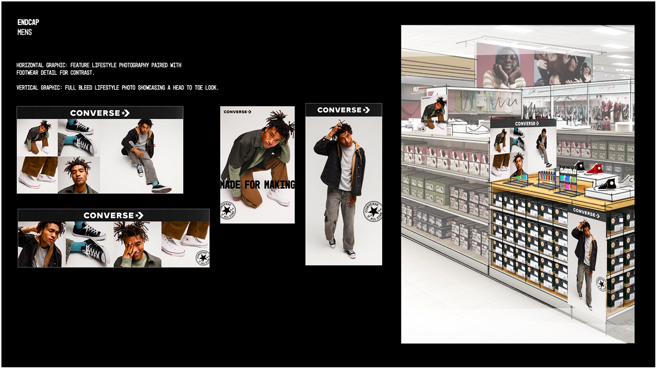 Converse’s introduction into the Target retail space features holiday imagery designed to retain the Converse spirit of confidence, irreverence, and creative play. Styling and attitude present the product in an effortlessly “cool,” yet attainable manner.